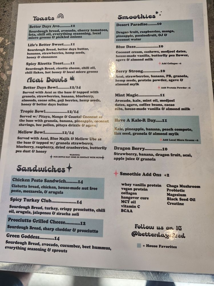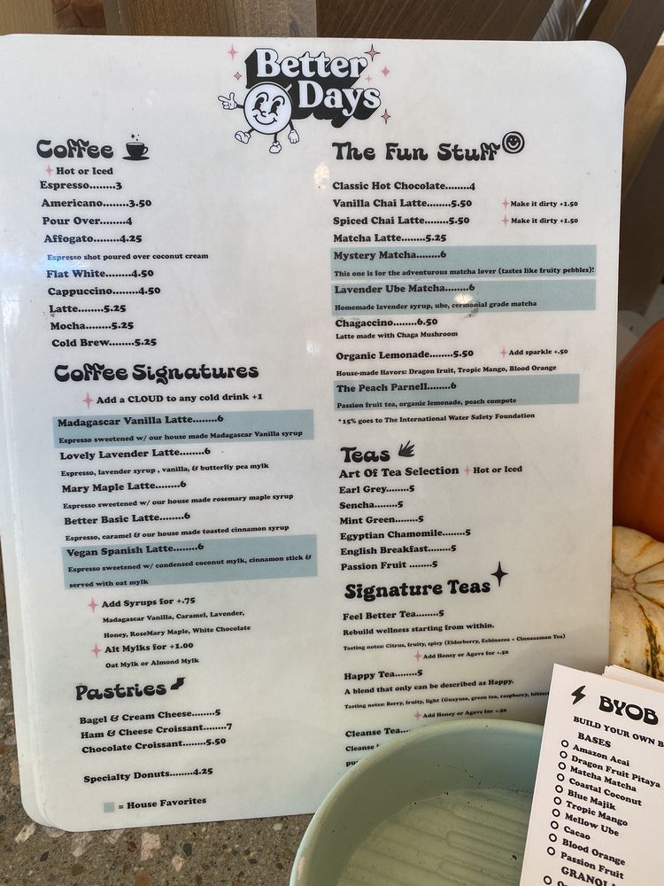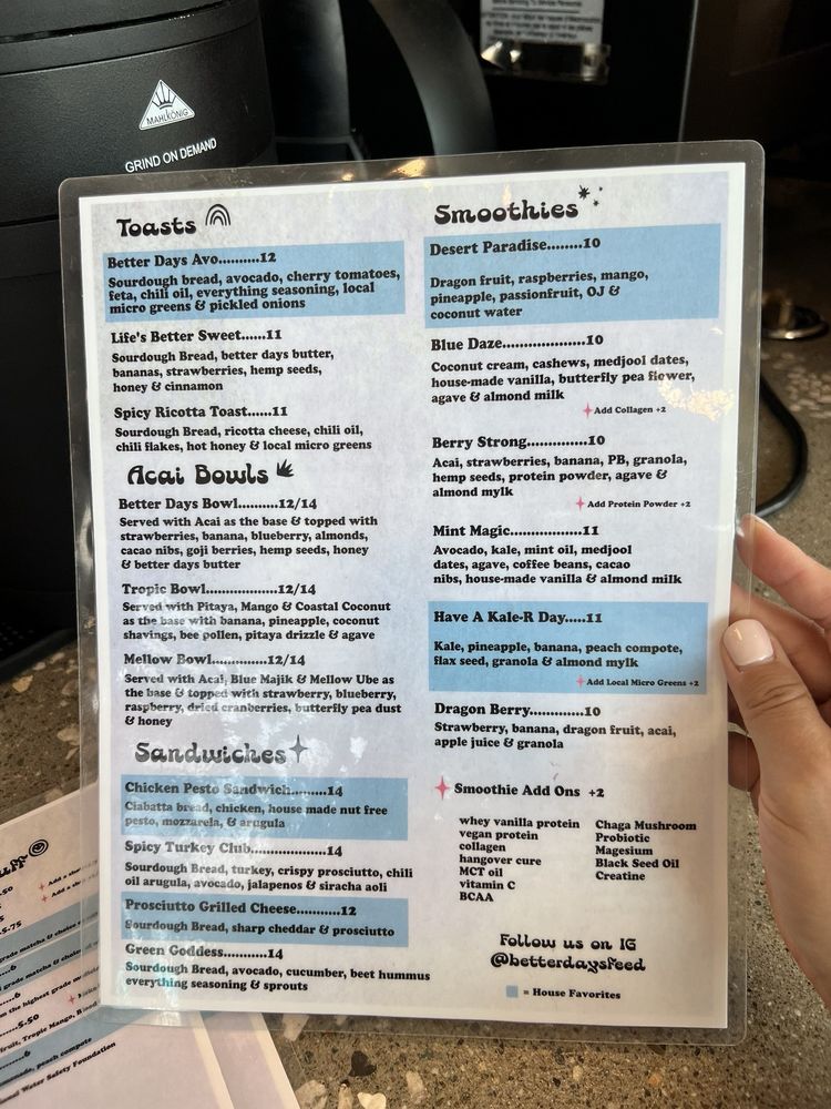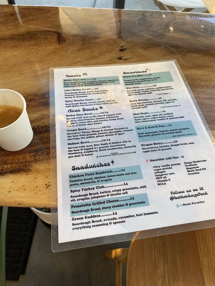 Better Days Coffee & Acai Menu (2025 Update)